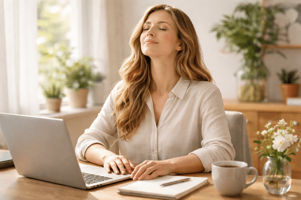 呼吸をゆっくり整えるだけで、気持ちが落ち着きやすくなり、頭の切り替えや軽いリフレッシュにもつながります。